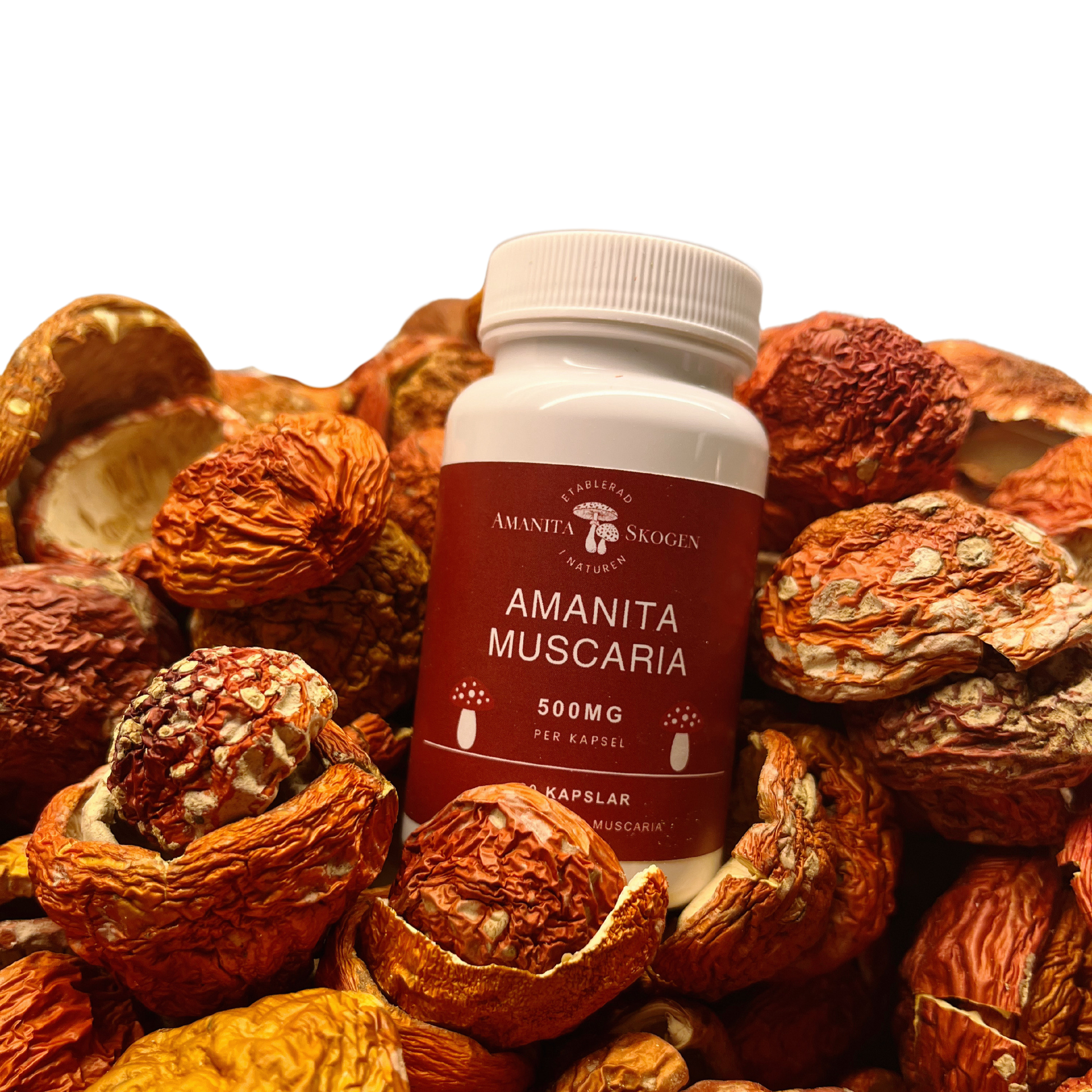 Våra Amanita Muscaria-kapslar innehåller 100 % torkad och finmald svamp, utan tillsatser eller konserveringsmedel.