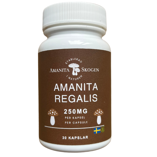 Denna produkt innehåller finmald Amanita Regalis – en närbesläktad art till Amanita Muscaria, känd för sin karaktäristiska färg och struktur.
